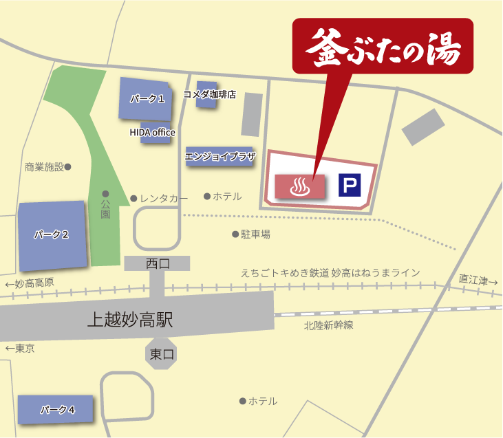 旅や仕事の疲れを駅前温泉・釜ぶたの湯で洗い流してください。